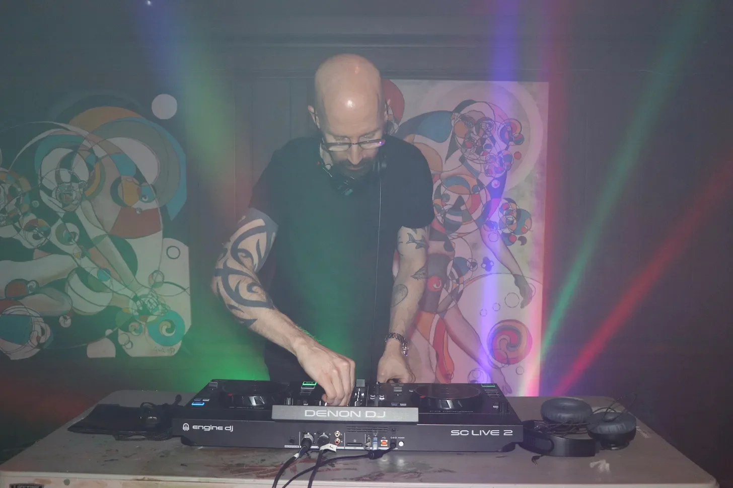 The sound enveloped the room, thick and immersive. Fog unfurled across the stage in soft, swirling waves. Colored lights cut through the haze in luminous beams transforming the room into something cinematic and otherworldly. We all moved through the mist like living poetry.